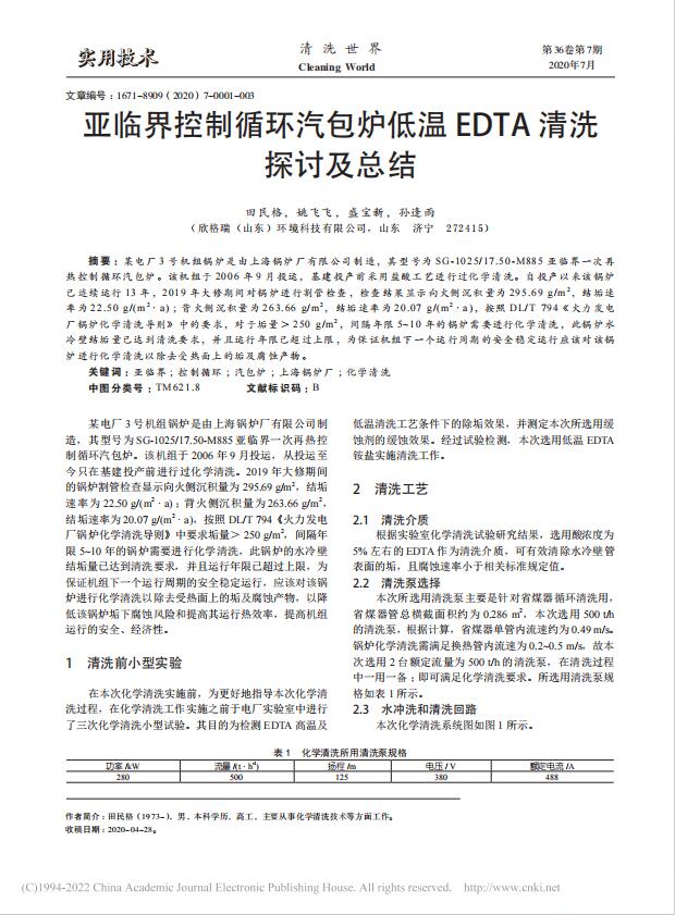 亞臨界控制循環汽包爐低溫EDTA清洗探討及總結