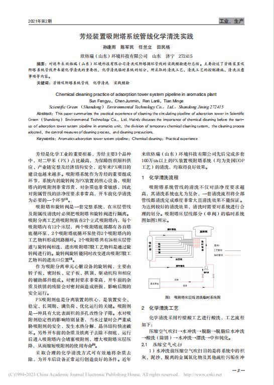 芳烴裝置吸附塔系統(tǒng)管線化學(xué)清洗實(shí)踐