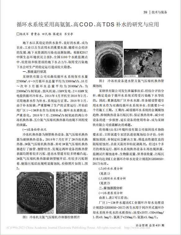 循環(huán)水系統(tǒng)采用高氨氮、高C...、高TDS補水的研究與應(yīng)用