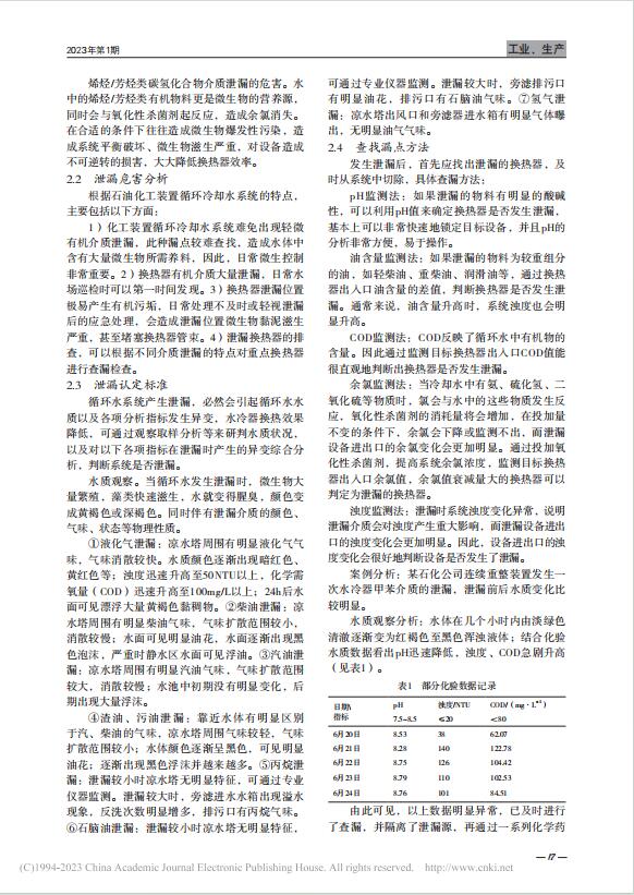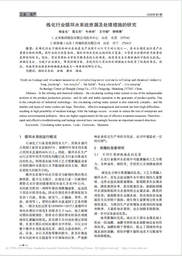 煉化行業循環水系統泄漏及處理措施的研究