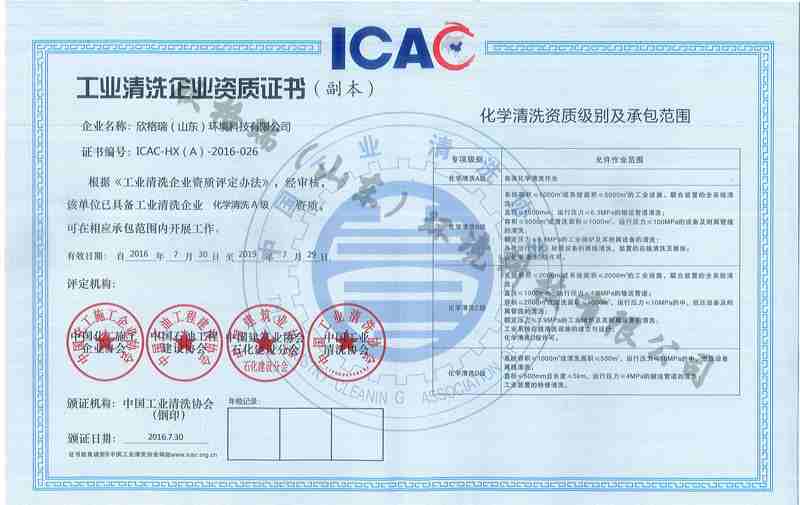 工業清洗化學清洗A資質